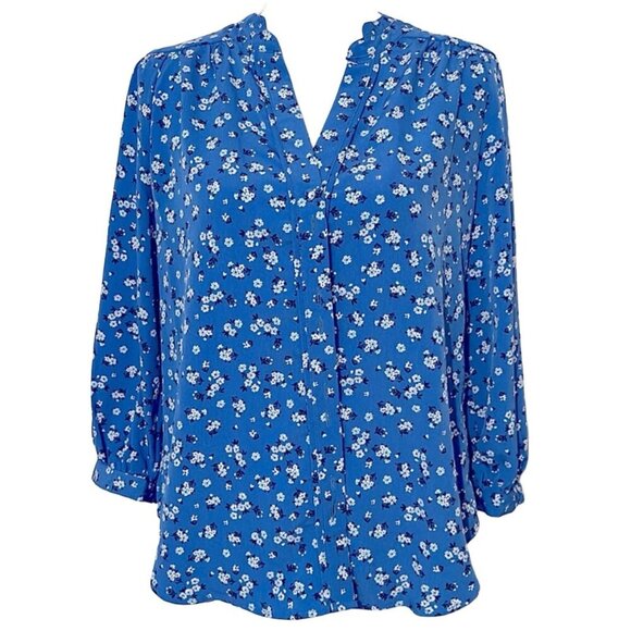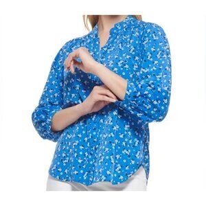 Karl Lagerfeld Womens Blouse Floral Blue Button Down Long Sleeve, Size M, NWT