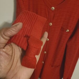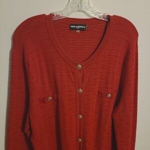 Karl Lagerfeld | Women's Classic Red Button-Down Cardigan Sweater (Size XL)