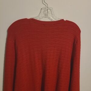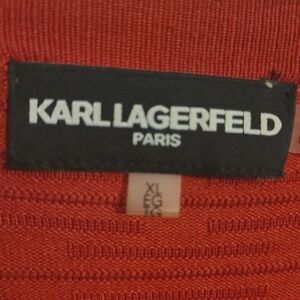 Elevate your wardrobe with this chic red sweater from Karl Lagerfeld. Perfect for any occasion, it combines style and comfort effortlessly. Women's size XL. Fabric blend of rayon and cotton.