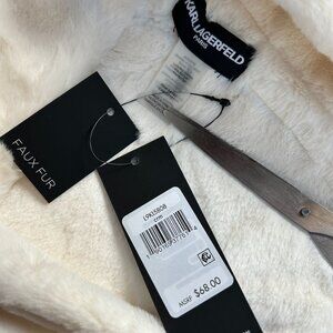 Wrap yourself in luxury with this Karl Lagerfeld faux fur scarf. Its plush material offers warmth and elegance, adding a touch of sophistication to any outfit. The scarf's versatile cream color effortlessly complements various styles, making it a chic accessory for cold-weather days. Elevate your wardrobe with this designer piece.