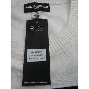 Karl Lagerfeld Women's Striped Logo Short Sleeve Sweater