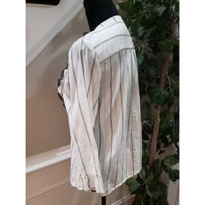Karl Lagerfeld Women's White Striped Cotton Long Sleeve Button Down Shirt Small.