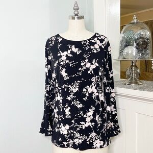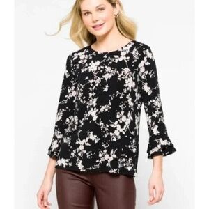 Karl Lagerfeld Yessie Trumpet Sleeve Floral Blouse Medium NWT