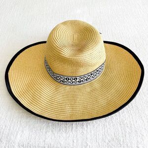 This listing is for a lovely sun hat by Karl Lagerfeld. With the tags still attached, it is brand NEW! This hat is made of lightweight and durable paper straw, has black trim, a black and white band with the words Lagerfeld and Paris on it, and an adjustable Velcro strap at the back. Finely woven and with a structured crown, wide brim, and UPF 40+, it's perfect for shielding you from the sun while lounging by the lake, pool, or beach. The brim measures 4.75 inches and the circumference ranges from 23.5 inches to about 26 inches.