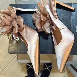 Step out in style with these elegant satin heels featuring a stunning floral design. Perfect for any special occasion.
