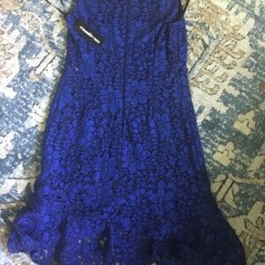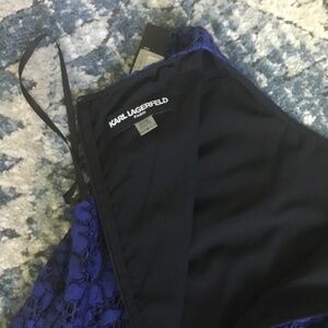 Karl Lagerfeld blue dress new with tags nylon and rayon and polyester lace over black lining