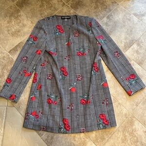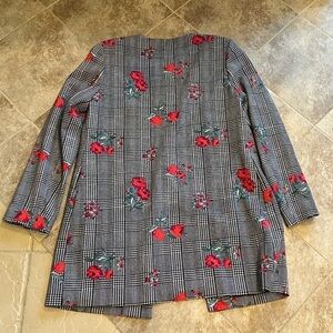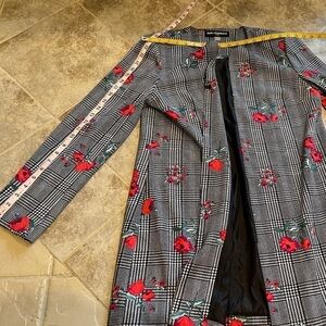 NEW Karl Lagerfeld plaid floral topper jacket large black white red.
