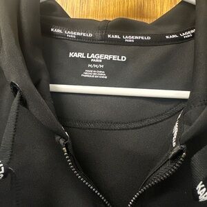 Karl Lagerfeld zippered hooded sweatshirt and pants. Black, Medium
