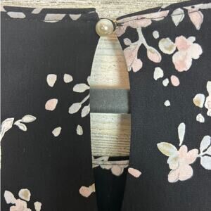 Karl Lagerfeld women size XL black floral long sleeve ruffle blouse designer top
