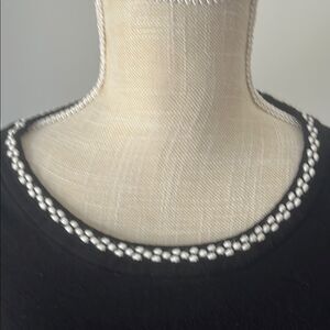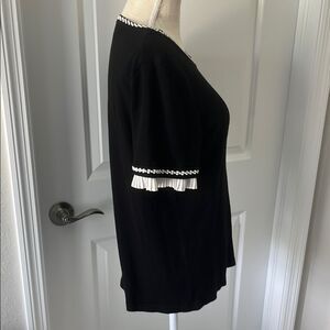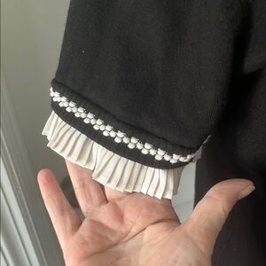 Karl Lagerfeld Black with Ruffled Sleeve White Stitching Detail Sweater