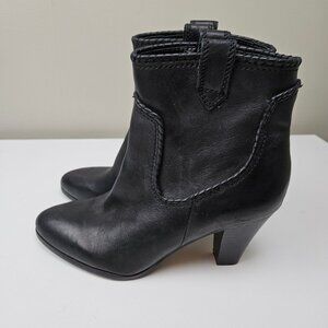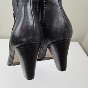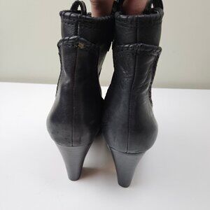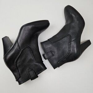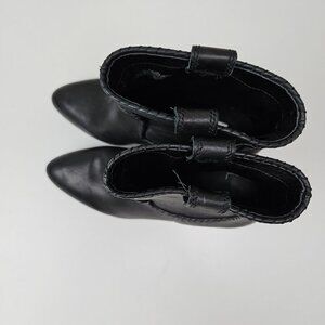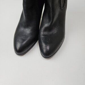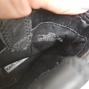 Karl Lagerfield Province Leather Trimmed Heeled Booties 8.5 Black Boot