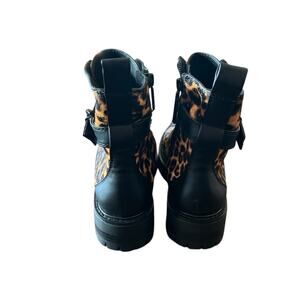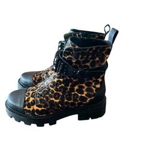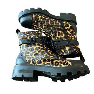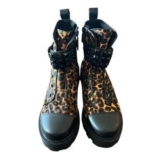 Karl Lagrerfield Paris Maeva Buckled Combat Booties Leopard Calf Hair NEW 6.5