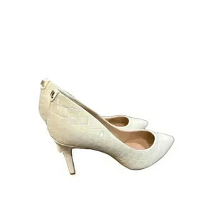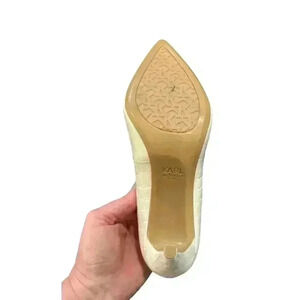 Karl Langerfeld Paris Royale White Leather Reptile Print Embossed Heels, Size 6.5M/