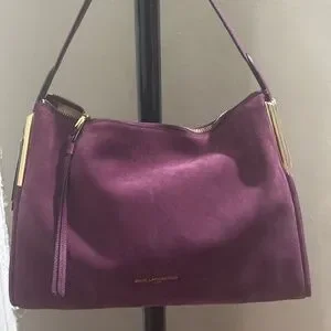 Purple and Gold medium size shoulder bag. With tan material inside. Toni’s bag is very lovely and can be used to carry most of your everyday needs.