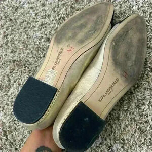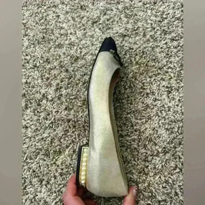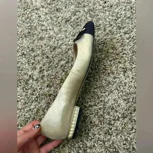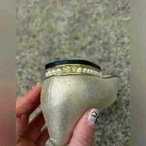 Good used condition, please see photos is missing 2 pearls in heels. Nothing noticeable when wearing. No size listed, they fit 7-7 1/2