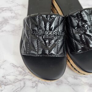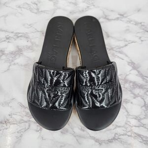 Karl Lagerfeld Kamara Black Quilted Platform Slide Sandals Jute Espadrilles