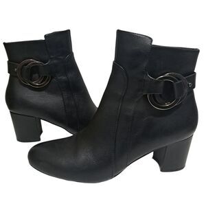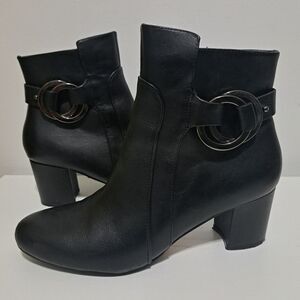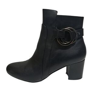 Karl Lagerfeld Paris Elegant Goth Leather Block Heel Ankle Boots Size 7.5 Black