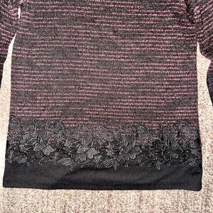 Karl Lagerfeld Paris Tweed Knit Lace Red Black Women's Sweater Top XS