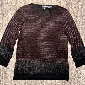 Karl Lagerfeld Paris Tweed Knit Lace Red Black Women's Sweater Top