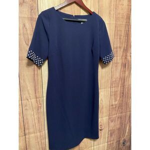 Karl Lagerfeld 6 Dress Navy Shift Dress Short Sleeves Polka Dot Cuffs Mod Chic