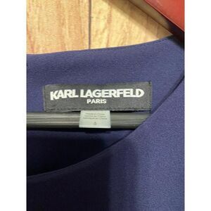Karl Lagerfeld size 6 Navy Blue Shift Dress Polka Dot Pearl accents business