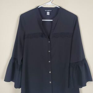 Karl Lagerfeld Paris Black Button-up Bell Sleeve Blouse