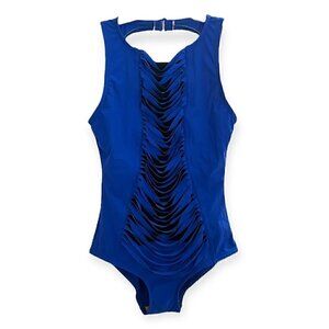 Karla Colletto Women’s Blue Sexy Draped Fringe Cut Out One Piece Swimsuit Luxury Swimwear Bathing Suit Size 6