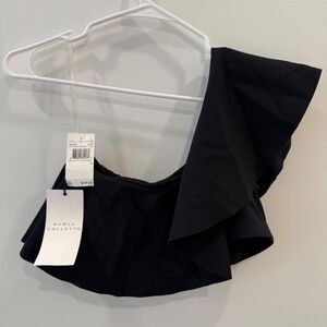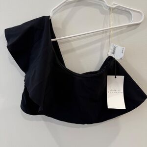 Karla Colletto - NWT Black "Zaha" One Shoulder Ruffle Bikini Top/Bottom, Size 14