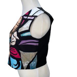 This amazing top premiered at the 2018 Met runway. Savior with lamb print resembling stained glass. Lined. Sleeveless. Back zip closure. Crew neck. Multicolor.
