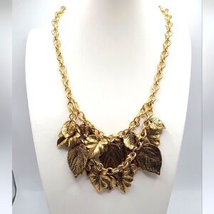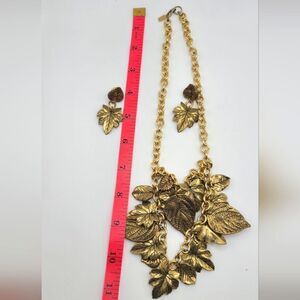 Karla Jordan Original Necklace and Earrings, goldtone leaves