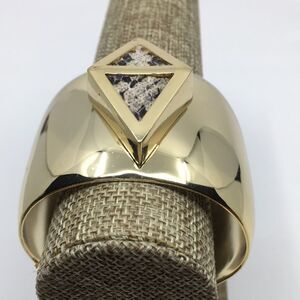Karla’s Closet chunky gold tone cuff bracelet with faux python detailing. In like new condition, except there is one small scratch as photographed in pics above. Wrist measurement also included above. Measuring using a fabric tape measure, it’s right at 7” circumference, which includes the opening in the band at the backs