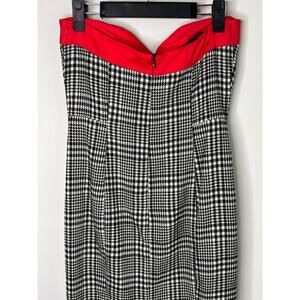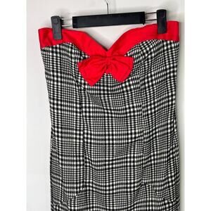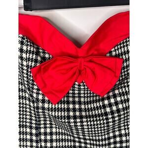 Karlie Bow Houndstooth Strapless Knee Length Sheath Dress Gray Women's Sz Small