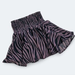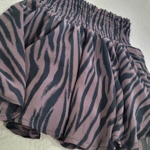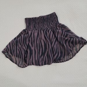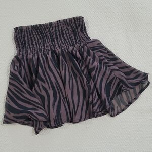 Stylish zebra print skirt with a comfortable, flowy design. Wide elastic waist band. Built in shorts lining.