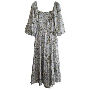 Karlie Clothes Palm Print Linen Blend Knot Back Maxi Dress Large Lined Smocked