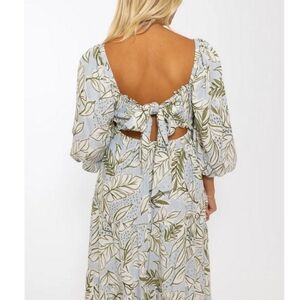 Karlie Clothes Palm Print Linen Blend Knot Back Maxi Dress Large Lined