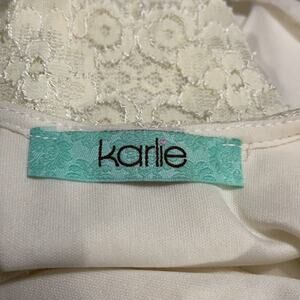 This beautiful sleeveless lace dress by Karlie is in very good, pre-owned condition.
