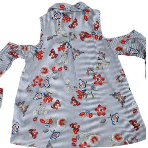Karlie Cut Out Shoulder Striped Floral Butterfly Long Sleeve Size M