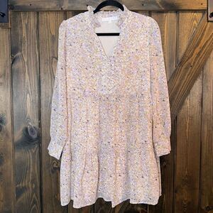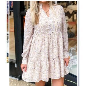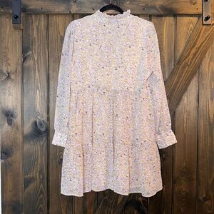 Karlie Floral Tiered Mini Dress Coquette Feminine Sz S Purple/Tan