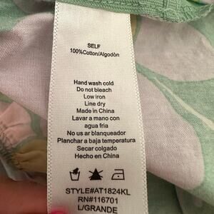 Add a pop of retro charm to your wardrobe with this Karlie floral peplum blouse in size Large. Features a vibrant green base with pink and yellow oversized daisy print, a flattering V-neck with scalloped trim, and a relaxed, flowy silhouette. Made from breathable 100% cotton—perfect for spring and summer.