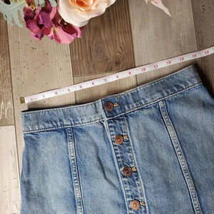 Karlie Kloss EXPRESS Medium Wash Button Up Denim Mini Skirt Size 2