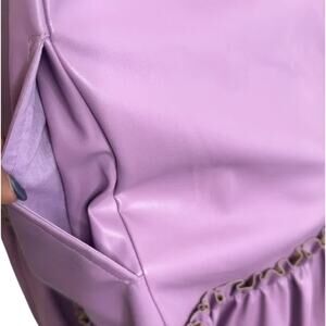Karlie Lavender Purple Faux Leather Button Shift Dress Puff Sleeve Ruffle Large
