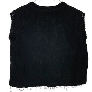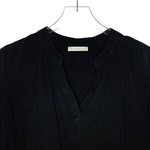 Karlie M Womens V Neck Short Sleeve Black Gauze Boxy Top Textured Breathable