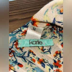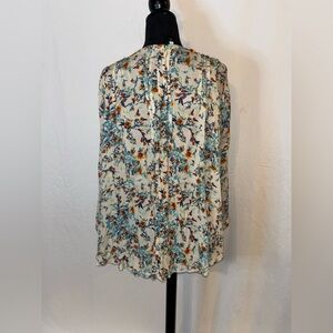 Chic floral blouse with vibrant colors. Lightweight and flowy. Ideal for casual outings.