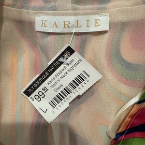 Karlie Multicolor retro Abstract v neck short sleeve satin dress Dress