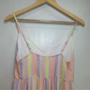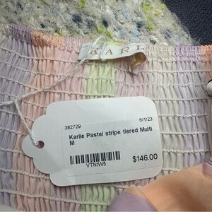 Karlie Pastel Stripe Tiered Midi Dress. Pink and White. Size: Medium.
