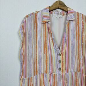 Karlie Pink V-Neck Striped Button Tunic Dress