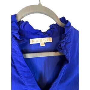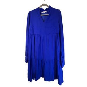 Beautiful KARLIE dress featuring a vibrant royal blue for a soft, feminine look. Designed with a flattering V-neckline and long cuffed sleeves that add subtle structure and charm. The bodice flows into an easy, comfortable skirt creating a polished yet wearable silhouette that works well for everyday wear, brunch, work, church, or casual events. Lightweight fabric offers comfortable movement and an effortlessly put-together feel. Fully lined with hidden side zip, this dress is comfortable. A versatile wardrobe staple that transitions seamlessly through multiple seasons.