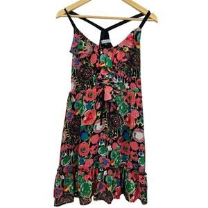 Karlie Women's Abstract Retro Multi Floral Ruffle Medium Racerback Flowy Dress