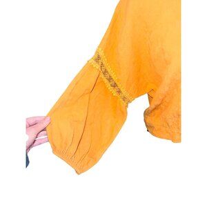 Karlie Womens Mustard Yellow Cotton Button-Front Cardigan Lace Baloon Sleeve L