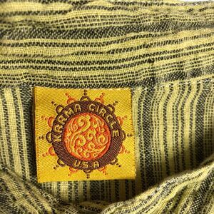 Karma Circle Top Womens M/L Yellow Striped Crinkle Popover Tunic Grunge Boho